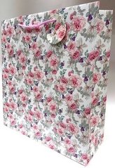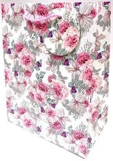 Torebka ozdobna matowa 26x32x12cm różowe kwiaty