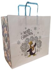 Torebka biała KRAFT 320x300x150 Święta Pingwin