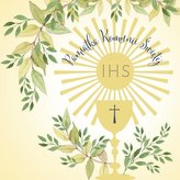 Karnet Swarovski kwadrat CL105 Komunia IHS Kielich