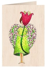 Karnet drewniany C6 + koperta Anioł z kwiatem