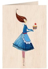 Karnet drewniany C6 + koperta Kobieta z ciastem