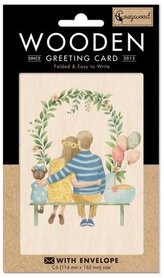 Karnet drewniany C6 + koperta Kobieta z bukietem