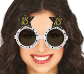 Narozeninové brýle 18 – Bílé s černými hvězdičkami