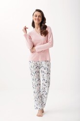 Piżama Luna 675 dł/r 3XL Z24/25 damska różowy kwiaty 3XL