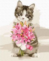 Malowanie po numerach - Kwiaty od kotka 40x50cm