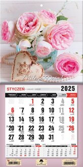 Kalendarz 2025 Trójdzielny z magnesem Romantico