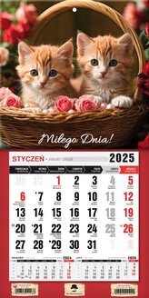 Kalendarz 2025 Trójdzielny z magnesem Kotki
