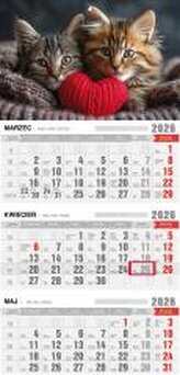 Kalendarz 2026 trójdzielny z magnesem kotki