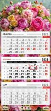 Kalendarz 2026 trójdzielny płaska główka kwiaty
