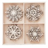 Drewniane sarenki i śnieżynki białe 3,5cm 12szt