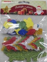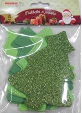 Naklejki z pianki choinki i bąbki z brokatem 49szt