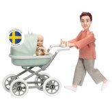 Lalka tata mężczyzna z dzieckiem i wózkiem