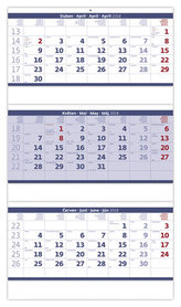 Kalendář nástěnný 2019 - Tříměsíční skládaný modrý