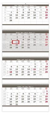 Kalendář nástěnný 2022 - Čtyřměsíční skládaný šedý