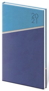 Diář 2021: Double Blue, kapesní týdenní, 90x140, s poutkem na propisku