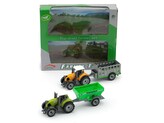 Sada 2 kovových traktorů se zemědělskou technikou; 24,5x21x5,5cm,