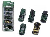 sada 5 vojenských vozidel 1:64, kov; 29,5x11x4,5cm, Š/B
