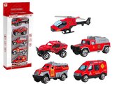 Sada 5 hasičských vozidel, kovová; 27,5x11x4cm, W/B