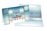 Přání A - Vánoční smetanové s motivem ilustrované vesničky /8,5x15cm