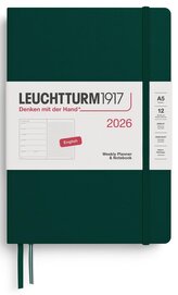 Weekly Planner & Notebook 2026 Medium (A5) Forest Green - tečkovaný