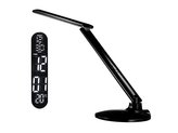 IMMAX LED stolní lampička Leather/ 6,5W/ 300lm/ 5V/1A/ 3 barvy světla/ flexibil. rameno/ možnost vypnutí LCD/ USB/ černá