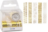 Dekorace pásky - 5 motivů bílá/zlatá lesklá, šířka 1,2cm ,návin 3 m, součástí odvíječ pásky