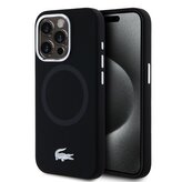 Lacoste Liquid Silicone Microfiber Silver Croc Logo MagSafe Zadní Kryt pro iPhone 15 Pro Black