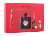 Yves Saint Laurent Black Opium parfémovaná voda 90 ml + rtěnka Rouge Volupté Shine 3,2 g No 85 + řasenka Mascara Volume Effet Faux Cils 2 ml No 1 + kosmetická taštička