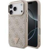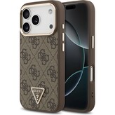 Guess PU Leather 4G Triangle Logo Gold Frame MagSafe kryt iPhone 17 Pro hnědý