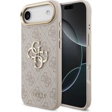 Guess PU Leather 4G Triangle Logo Gold Frame MagSafe kryt iPhone 17 Pro Max růžový