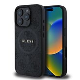 Guess PU Leather 4G Colored Ring MagSafe Zadní Kryt pro iPhone 16 Pro Black