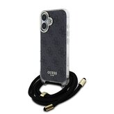 Guess IML 4G Printed Crossbody Popruh Zadní Kryt pro iPhone 16 Black