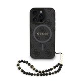Guess PU Leather 4G Colored Ring Strap MagSafe Zadní Kryt pro iPhone 16 Pro Black