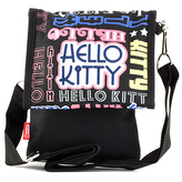 Kabelka přes rameno Hello Kitty černá, s barevnými nápisy Hello Kitty