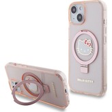 Hello Kitty IML Ringstand Glitter Kitty Head Logo MagSafe kryt iPhone 15 Pro růžový