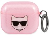 Karl Lagerfeld TPU Glitter Choupette Head pouzdro pro Airpods 3 růžové