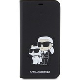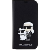 Karl Lagerfeld PU Saffiano Karl and Choupette NFT flipové pouzdro pro iPhone 13 černé