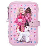Dvojposchodový peračník na kód Top Model, Rôzový s potlačou, Candy + Malia + pudel