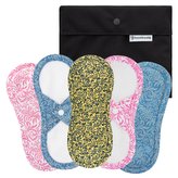 Bamboolik Výhodné sady | Slipové vložky látkové | satén & biobavlna Barva: 5 ks: 2x světle modrá, 2x růžová, 1x žlutá + Pytlík mini Černý, Varianta: Sada 5 ks - Na patentek + Pytlík mini černý