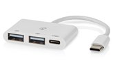 NEDIS USB hub/ 1x zástrčka USB-C/ 1x zásuvka USB-C/ 2x zásuvka USB-A/ 3 porty/napájení z USB/ bílý