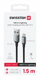 DATOVÝ KABEL SWISSTEN TEXTILE II USB / LIGHTNING 1,5 M ČERNÝ