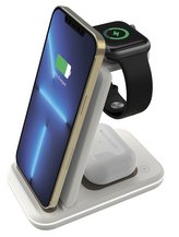 CANYON Bezdrátová nabíječka WS-304 CL, QC18W, 3v1, vstup 9V/2A, 12V/1.5A, výstup 15W/10W/7.5W/5W,Type C to USB-A, latte