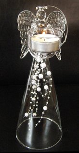 Anděl čirý se skleněnými perlami na čajovou svíčku 25 cm