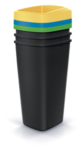 Odpadkový koš COMPACTA R DROP - objem: 35 l, barva: recykl. černá se světle žlutým víkem