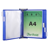 tarifold nástěnný kovový držák s rámečky, 10 rámečků s kapsami A4 na výšku, modré, 1 set