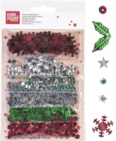 Dekorace 6 druhů - Vánoce - barva: červená, zelená, stříbrná.