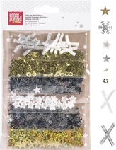 Dekorace 6 druhů - Vánoce - barva: bílá, stříbrná, zlatá.