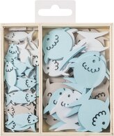 Dřevěné ozdoby v boxu 54ks - rybičky - 2 velikosti, rozměr motivů: 3 cm, 4 cm.