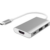 PremiumCord Převodník USB3.1 typ C na HDMI + 2xUSB3.0 + PD nabíjení stříbrný