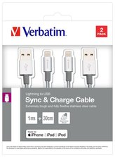 Verbatim Lightning kabel 100cm + 30cm, SYNC + CHARGE stříbrný